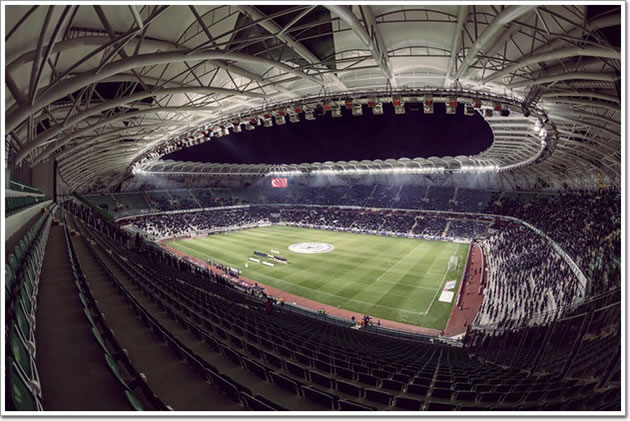 科尼亞城市體育館實(shí)景圖 科尼亞城市體育館坐落在科尼亞城市北部,距離市中心9公里,占地面積約450000平米,包含一個(gè)足球運(yùn)動(dòng)場(chǎng)、一個(gè)游泳館、一個(gè)自行車賽車場(chǎng)和一個(gè)廣場(chǎng)。該體育館是科尼亞城市文化符號(hào)與現(xiàn)代建筑相互碰撞的產(chǎn)物,建筑的外立面白綠相間的顏色正是代表了這個(gè)城市的足球隊(duì)。 建筑的平面布置是根據(jù)歐足聯(lián)的標(biāo)準(zhǔn)設(shè)計(jì)的。場(chǎng)館分上下兩層看臺(tái),總共可容納4.2萬(wàn)人?磁_(tái)是環(huán)形的,在東南西北四個(gè)方向均設(shè)有座位區(qū)。在觀眾就坐的看臺(tái)下面有設(shè)置多個(gè)廁所和零售區(qū),足夠?yàn)閳?chǎng)館內(nèi)的所有人提供服務(wù)。
